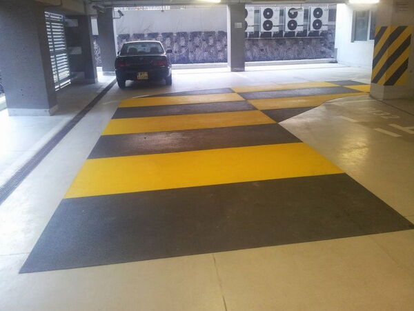 На подземном паркиралишту у седишту једне од банака опасне ситуације је врло често изазивао похабан противклизни излив. Посебно опасним су се показали завоји и коси спустов на нижи ниво. На овим местима аутомобили врло лако су проклизавали. Инсталација Evergrip противклизних плоча дебљине 4мм дефинитивно је побољшала приањање аутомобила. Описана монтажа је била последњи део посла на обезбеђењу опасних места у наведеној гаражи, две претходне инсталације су изведене 2009. године.